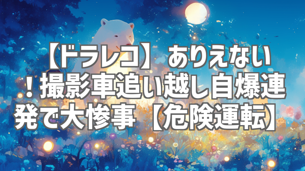【ドラレコ】ありえない!撮影車追い越し自爆連発で大惨事【危険運転】 これはマジでありえない映像だ…。YouTubeチャンネル「ポリス パトカー 神対応 ちゃんねる2h【年内目標10万人】」で公開された動画「止まる撮影車を追い越して自爆する無謀な後続車た... -