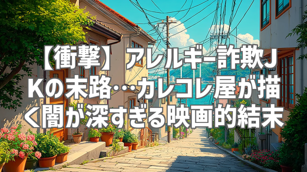 【衝撃】アレルギー詐欺JKの末路…カレコレ屋が描く闇が深すぎる映画的結末 「混血のカレコレ」がまたしても我々の心を揺さぶる短編アニメを公開しました。今回のテーマは「アレルギー詐欺」。たった45秒の中に、現代社会の闇、人間のエゴ、そして後悔が凝... -