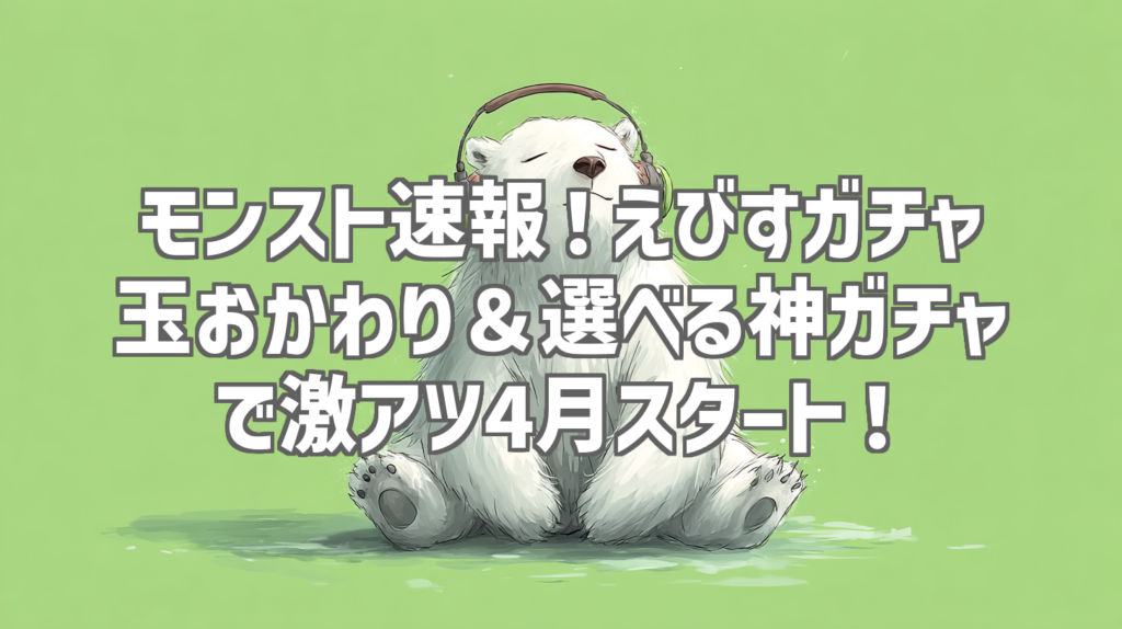 モンスト速報!えびすガチャ玉おかわり&選べる神ガチャで激アツ4月スタート! 皆さん、モンストしてますかー!? 今回は、モンスト公式チャンネルで2026年4月2日に公開されたばかりの最新情報満載のモンストニュースを深掘りレビューしていきます! えび... -