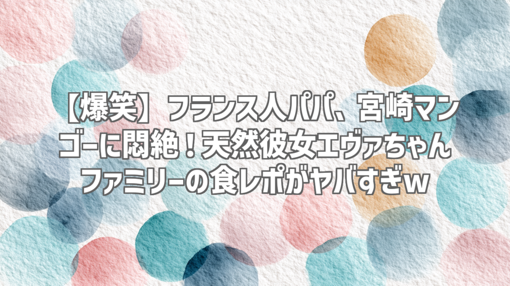【爆笑】フランス人パパ、宮崎マンゴーに悶絶!天然彼女エヴァちゃんファミリーの食レポがヤバすぎw いやー、マジで笑った!今回ご紹介するのは、人気YouTubeチャンネル「天然彼女エヴァちゃん」の動画「フランス彼女のパパに人生初宮崎マンゴー食べさせて... -