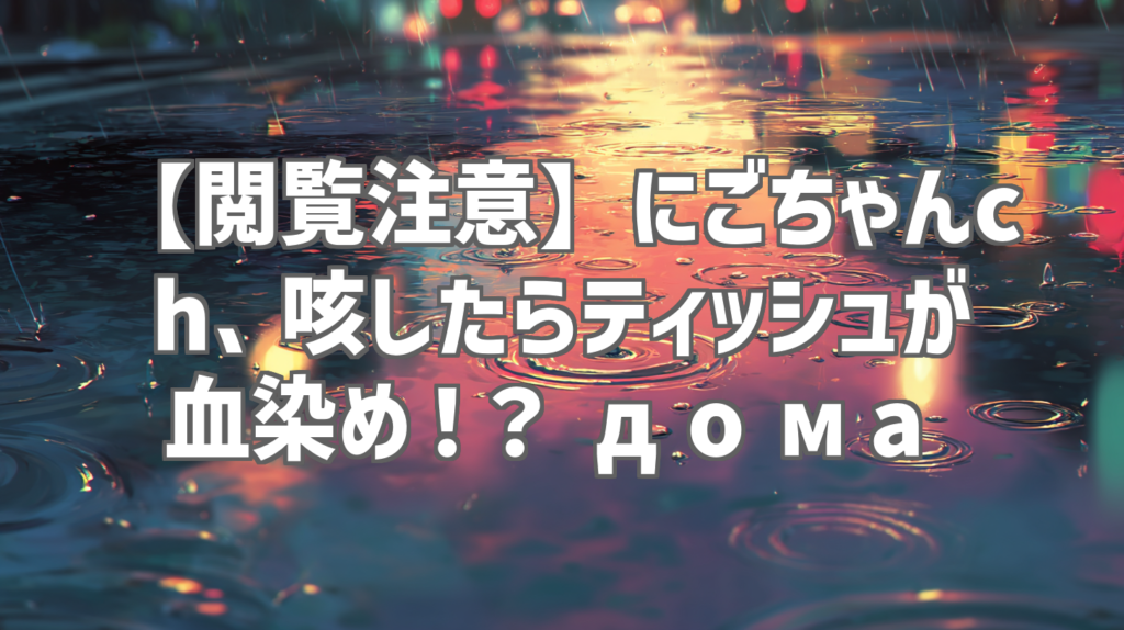 【閲覧注意】にごちゃんch、咳したらティッシュが血染め!? дома ある日、YouTubeを開くと、サムネイルが真っ赤な動画が目に飛び込んできた。「にごちゃんch」の「家で咳したらティッシュが真っ赤!?」という動画だ。正直、サムネイルを見た瞬間、目を背... -