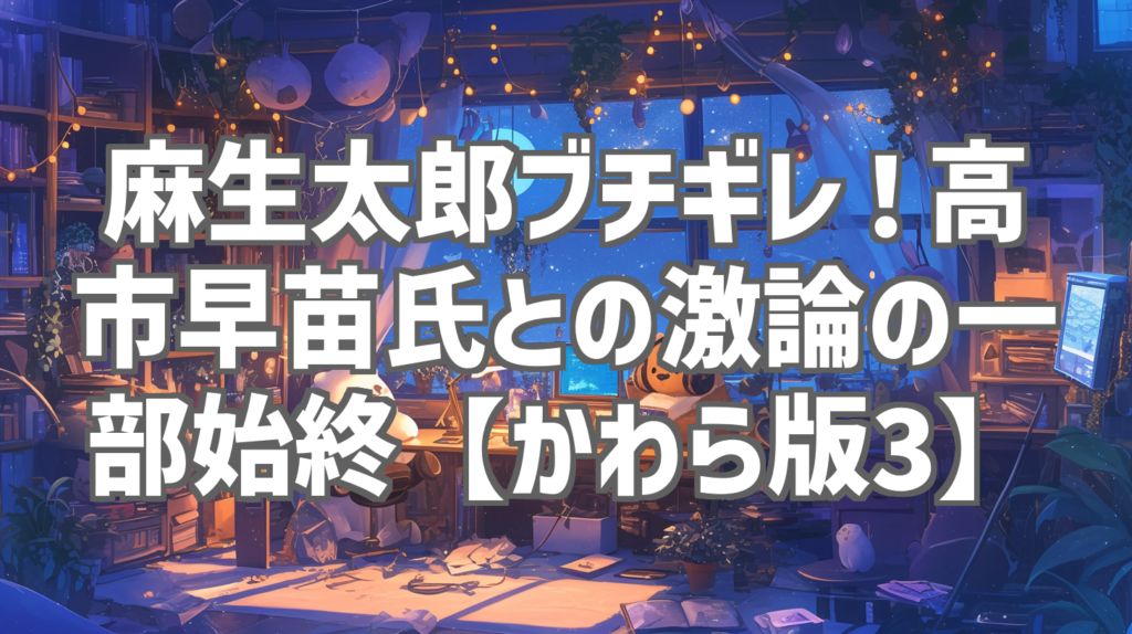 麻生太郎ブチギレ!高市早苗氏との激論の一部始終【かわら版3】