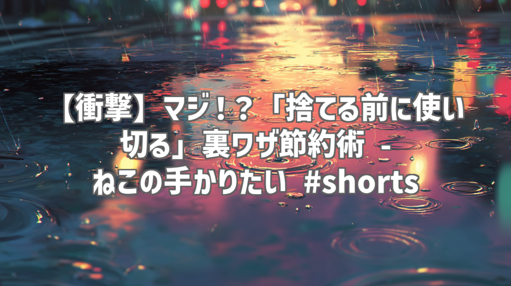 【衝撃】マジ!?「捨てる前に使い切る」裏ワザ節約術 - ねこの手かりたい #shorts 最近、YouTubeを徘徊していたら、とんでもなく役立ちそうな節約術を発見してしまいました!それが「ねこの手かりたい」さんの【衝撃】マジ!?「捨てる前に使い切る」裏ワ... -