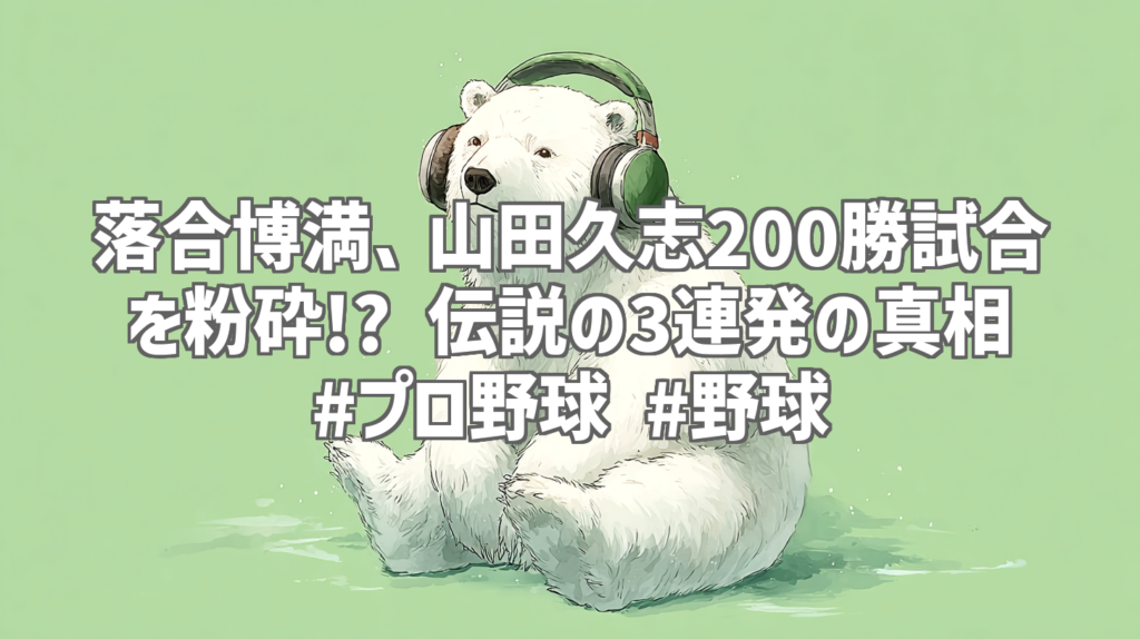 落合博満、山田久志200勝試合を粉砕!? 伝説の3連発の真相 #プロ野球 #野球 プロ野球ファンなら誰もが知るであろうレジェンド、落合博満。その規格外の打撃センスは、数々の伝説を生み出してきました。今回ご紹介するのは、YouTubeチャンネル「ベースボール... -
