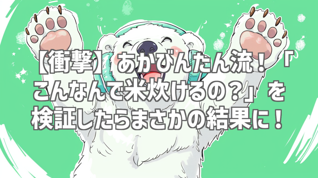 【衝撃】あかびんたん流!「こんなんで米炊けるの?」を検証したらまさかの結果に! え、本当に? これ、マジで炊けるの? 正直、最初にこの動画のタイトルを見たとき、そう思わずにはいられませんでした。「こんなんで米炊けるの?」という、あまりにも... -