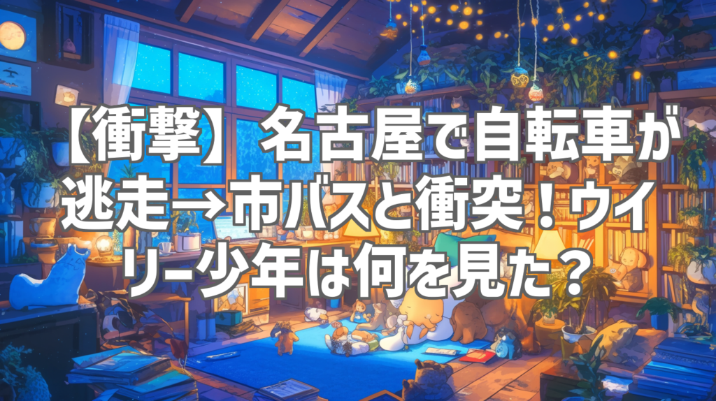 【衝撃】名古屋で自転車が逃走→市バスと衝突!ウイリー少年は何を見た? 今回の話題は、名古屋で起きた衝撃的なニュース映像です。中京テレビNEWSが報じた「【警察から逃走の自転車が市バスと衝突】「子どもがウイリーして騒いでいる」 名古屋・中村区 #... -