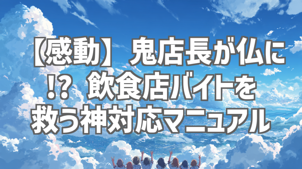 【感動】鬼店長が仏に!? 飲食店バイトを救う神対応マニュアル 飲食店で働く皆さん、一度は「うちの店長、鬼かよ…」って思ったことありませんか?でも、ちょっと待ってください!もしかしたら、その鬼店長、実はめちゃくちゃ部下思いの仏様かもしれませんよ... -