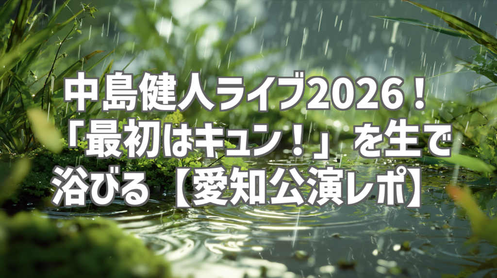 中島健人ライブ2026!「最初はキュン!」を生で浴びる【愛知公演レポ】 先日、待ちに待った中島健人さんのライブツアー「"IDOL1ST 中島健人"LIVE TOUR 2026」愛知公演に参戦してきました!もう、会場全体が熱気に包まれていて、始まる前からドキドキが止ま... -