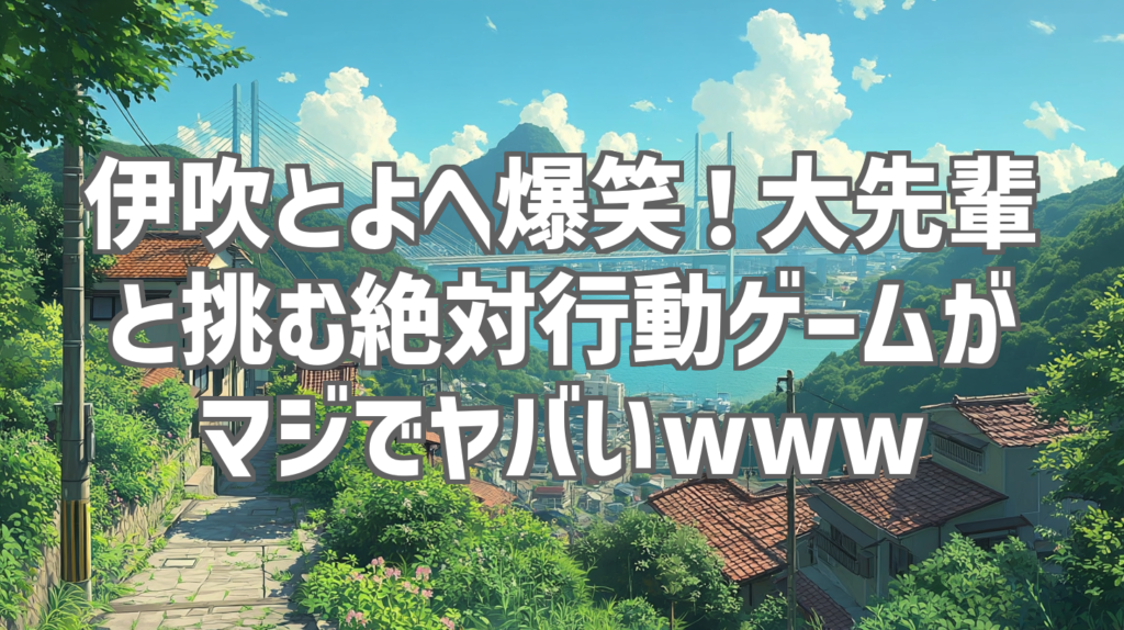 伊吹とよへ爆笑!大先輩と挑む絶対行動ゲームがマジでヤバいwww 伊吹とよへの最新動画「大先輩と絶対行動ゲームwww」を見た感想を、熱量MAXでお届けするぞ!たった58秒の中に、笑いと衝撃がこれでもかと詰め込まれていて、マジで中毒性高すぎ。電車の中で... -