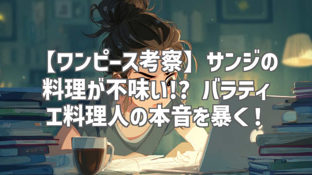 【ワンピース考察】サンジの料理が不味い!? バラティエ料理人の本音を暴く! 「ワンピース」の愛すべきコック、サンジ。彼の料理は麦わらの一味にとって文字通り生命線であり、読者にとっても涎が止まらない魅惑的な存在です。しかし、今回ご紹介する動画... -