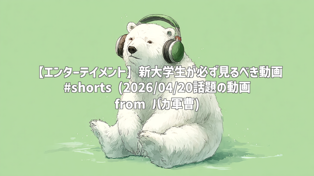 【エンターテイメント】新大学生が必ず見るべき動画 #shorts (2026/04/20話題の動画 from バカ軍曹) 動画: 新大学生が必ず見るべき動画 #shorts (YouTubeより) 動画情報 チャンネル: バカ軍曹 公開日: 2026年04月17日 再生回数: 約1,261,618回 動画の長さ:... -