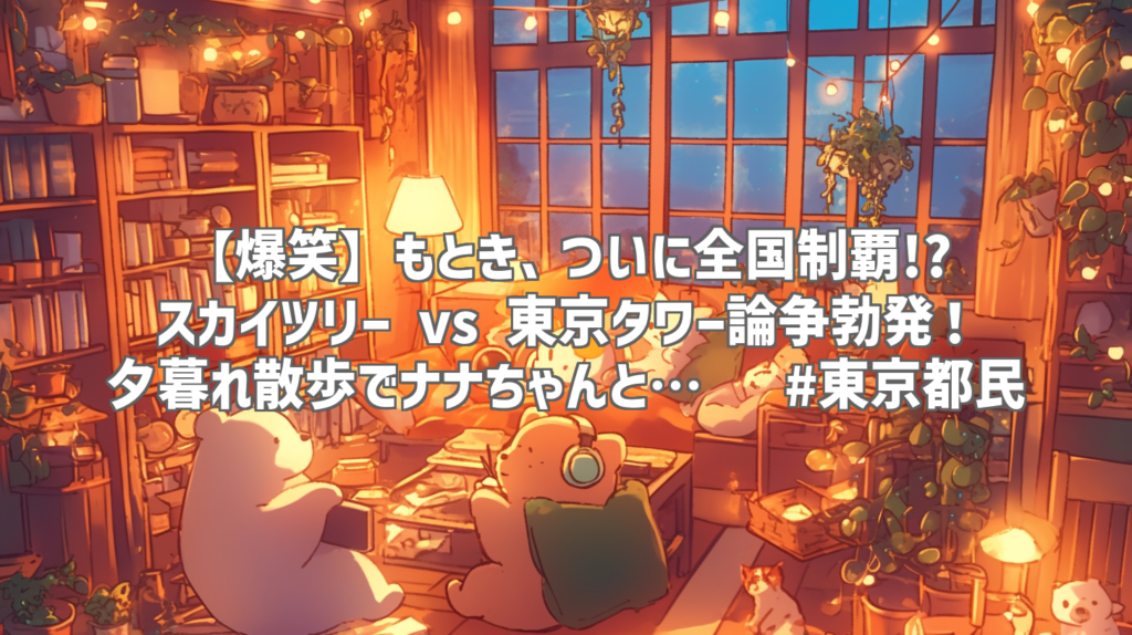 【爆笑】もとき、ついに全国制覇!? スカイツリー vs 東京タワー論争勃発!夕暮れ散歩でナナちゃんと…🥺 #東京都民 いやー、もときさん、マジで最高!今回の動画も冒頭から笑いが止まりませんでした!「とうとう全国制覇🗾🎊」って、... -