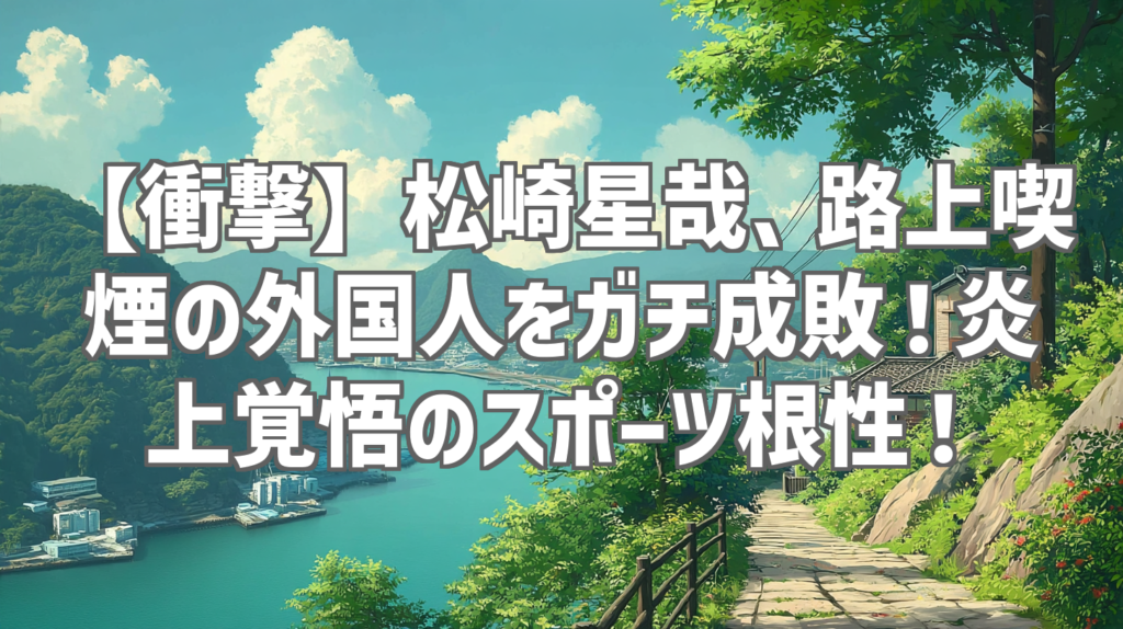 【衝撃】松崎星哉、路上喫煙の外国人をガチ成敗!炎上覚悟のスポーツ根性! まさかあの松崎星哉が、こんなにも物議を醸すような動画を公開するとは…。正直、驚きを隠せません。今回の動画は、タイトル通り、松崎星哉さんが路上喫煙をしている外国人に対し... -