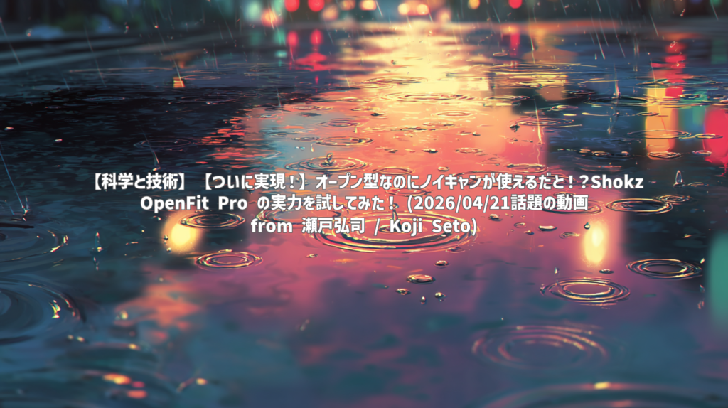 【科学と技術】【ついに実現!】オープン型なのにノイキャンが使えるだと!?Shokz OpenFit Pro の実力を試してみた! (2026/04/21話題の動画 from 瀬戸弘司 / Koji Seto) ついに来た!オープンイヤー型イヤホンでノイズキャンセリングが使える時代が!瀬... -