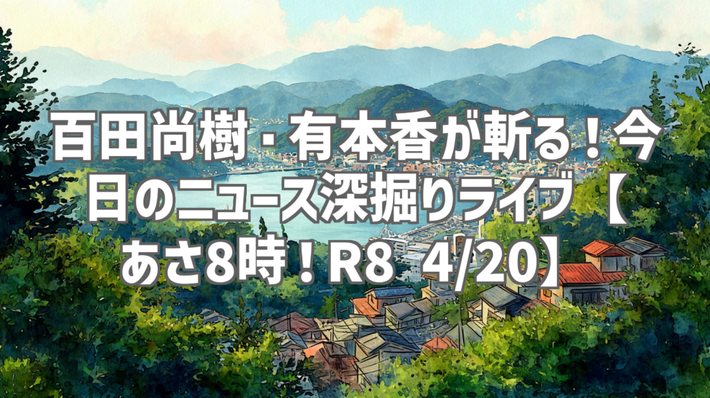 百田尚樹・有本香が斬る!今日のニュース深掘りライブ【あさ8時!R8 4/20】 朝のニュース番組は数あれど、ここまでズバッと核心に迫る番組は他にない!百田尚樹さんと有本香さんのコンビでお届けする「ニュースあさ8時!」、2026年4月20日放送回の深掘りレ... -