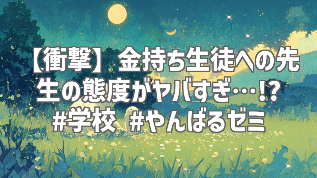【衝撃】金持ち生徒への先生の態度がヤバすぎ…!? #学校 #やんばるゼミ SNSで話題沸騰中!「やんばるゼミ」さんのショート動画「親がお金持ちな生徒に対して先生は…」を徹底レビューします。たった32秒の中に、現代社会の縮図が凝縮されていると言っても過...