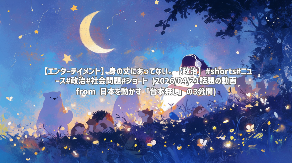 【エンターテイメント】身の丈にあってない。【政治】#shorts#ニュース#政治#社会問題#ショート (2026/04/21話題の動画 from 日本を動かす「台本無し」の3分間) 皆さん、こんにちは! 今回は、YouTubeチャンネル「日本を動かす「台本無し」の3分間」から、... -