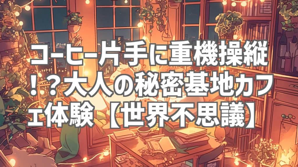 コーヒー片手に重機操縦!?大人の秘密基地カフェ体験【世界不思議】 突然ですが、皆さんは「大人の秘密基地」と聞いて何を思い浮かべますか?プラモデル、ゲーム、ガジェット…人それぞれロマンを掻き立てられるものがあるはず。今回ご紹介するのは、そん... -