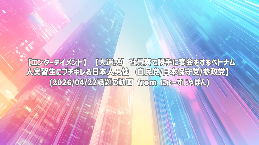【エンターテイメント】【大迷惑】社員寮で勝手に宴会をするベトナム人実習生にブチギレる日本人男性【自民党/日本保守党/参政党】 (2026/04/22話題の動画 from にゅーすじゃぱん) 動画: 【大迷惑】社員寮で勝手に宴会をするベトナム人実習生にブチギレる... -