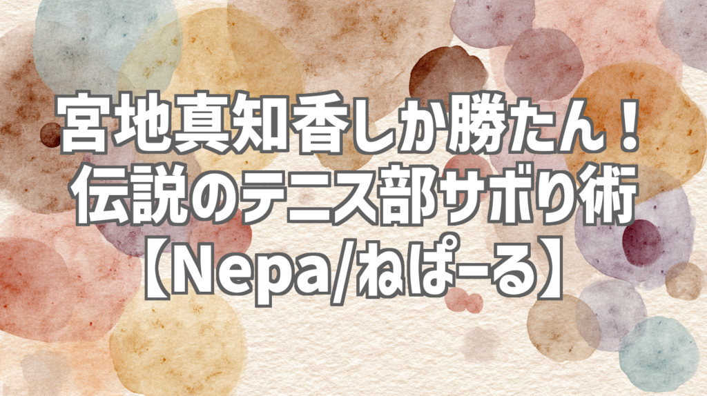宮地真知香しか勝たん!伝説のテニス部サボり術【Nepa/ねぱーる】 いやー、Nepa / ねぱーるさんの動画って、本当に中毒性ありますよね! 今回は、特に話題になっている「【実話】宮地真知香にしかできない部活のサボり方【テニス】#Shorts」という動画を徹... -