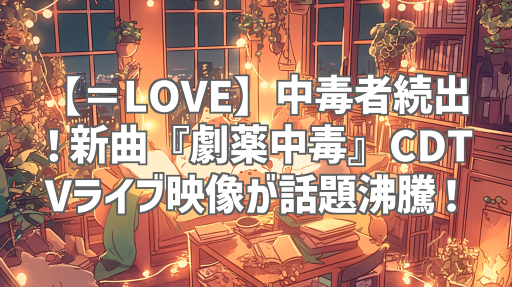 【=LOVE】中毒者続出!新曲『劇薬中毒』CDTVライブ映像が話題沸騰! 先日公開された=LOVE(イコールラブ)の新曲『劇薬中毒』のCDTVライブ映像が、公開から間もなく20万回再生を突破し、SNSを中心に大きな話題となっています!私も早速視聴しましたが、... -
