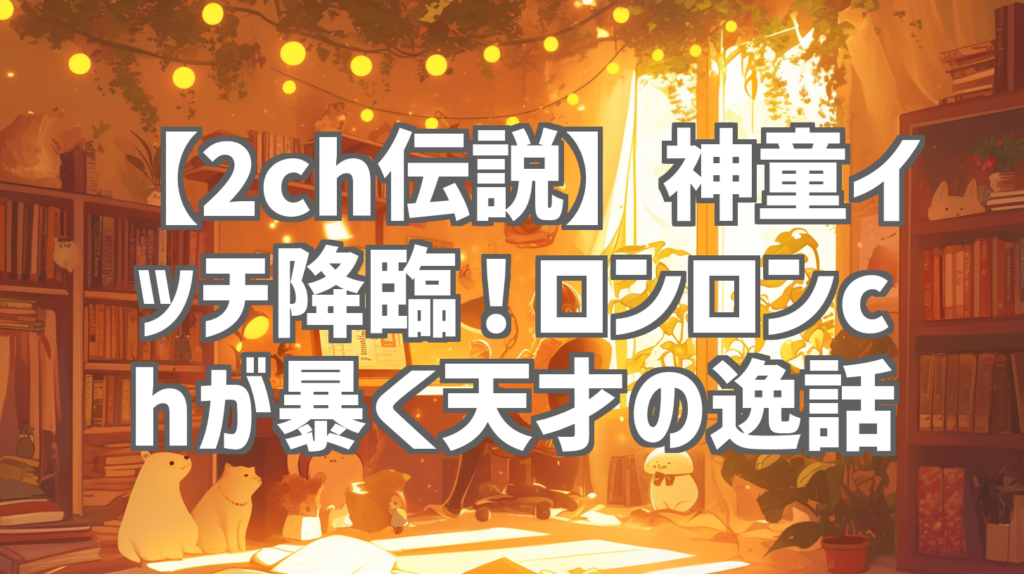【2ch伝説】神童イッチ降臨!ロンロンchが暴く天才の逸話 2ちゃんねる、通称2ch(現5ch)は、数々の伝説を生み出してきた巨大掲示板です。その中でも、一際異彩を放つ存在が「神童イッチ」と呼ばれる人物。彼の驚異的な頭脳と、常人には理解しがたい思考回...