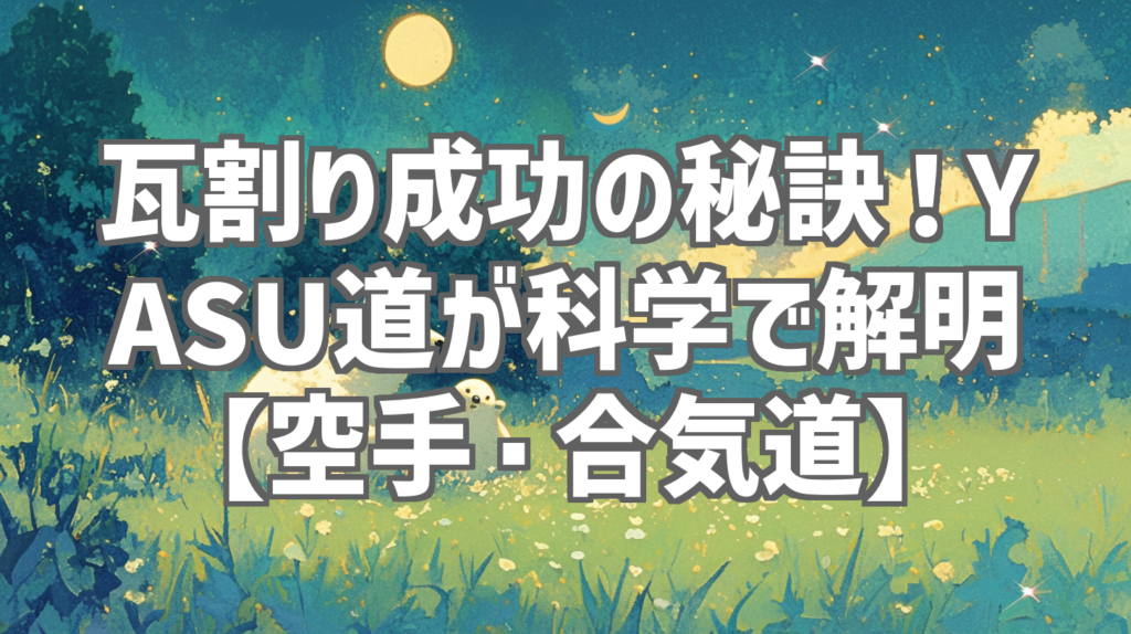 瓦割り成功の秘訣!YASU道が科学で解明【空手・合気道】 瓦割りって、ロマンがありますよね!子どもの頃、テレビで見て「いつか自分も!」と思った人もいるんじゃないでしょうか。でも、実際にやってみると、なかなかうまくいかない…。そんな瓦割りの成功... -