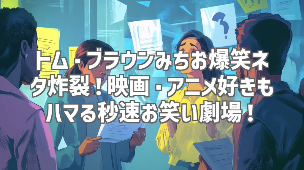 トム・ブラウンみちお爆笑ネタ炸裂!映画・アニメ好きもハマる秒速お笑い劇場! 皆さん、お笑い好きですか? 特に、映画やアニメのパロディネタに弱いって人、いますよね? 今日は、そんなあなたにドストライク間違いなしの、トム・ブラウンみちおさんの爆... -