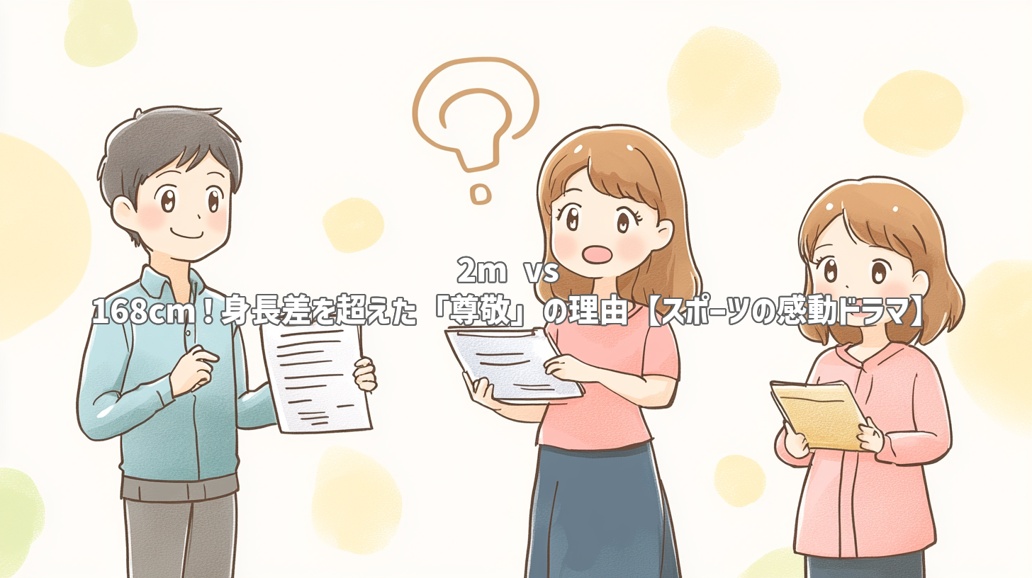 「2m vs 168cm!身長差を超えた「尊敬」の理由【スポーツの感動ドラマ】」というタイトルでご紹介した今回の記事は、YouTubeチャンネル「1分動画」が投稿した「2mの選手が168cmの選手を尊敬する理由」という短いながらも非常に示唆に富んだ動画を深く掘り下げてきました。