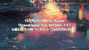 | 記事タイトル | 74万円CPUが動いた!Ryzen Threadripper Pro 9975WX、トラブル越えの”化け物”ベンチマーク【500万円PC計画】 |