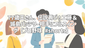 野球ファンなら誰もが知るレジェンド、王貞治さん。その王さんが、なんと77歳にして、かつてのライバルである工藤公康さんと城島健司さんのバッテリーを相手にフルスイングするという、夢のような動画がYouTubeに公開されました!短い動画ながら、往年のファンにはたまらない、そして若い世代にも野球の魅力を伝える、まさに「伝説再び」と呼ぶにふさわしい内容です。今回は、そんな話題沸騰中の動画「77歳王さん、工藤&城島バッテリーにフルスイング #shortsfeed #プロ野球」を徹底レビューします!