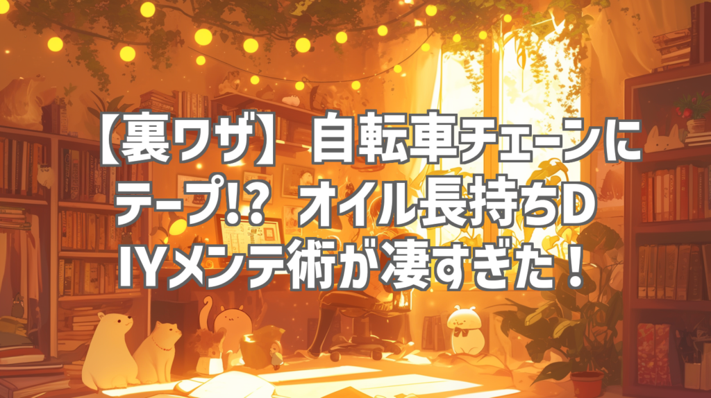 【裏ワザ】自転車チェーンにテープ!? オイル長持ちDIYメンテ術が凄すぎた! 自転車のメンテナンスって、正直ちょっと面倒くさいですよね。特にチェーンのオイルって、す… -