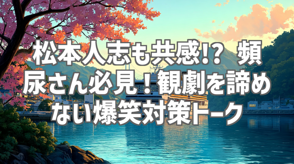 松本人志も共感!? 頻尿さん必見!観劇を諦めない爆笑対策トーク 劇場での観劇、ライブ、映画館…楽しいイベントのはずなのに、頻尿が気になって心から楽しめない…そんな… -