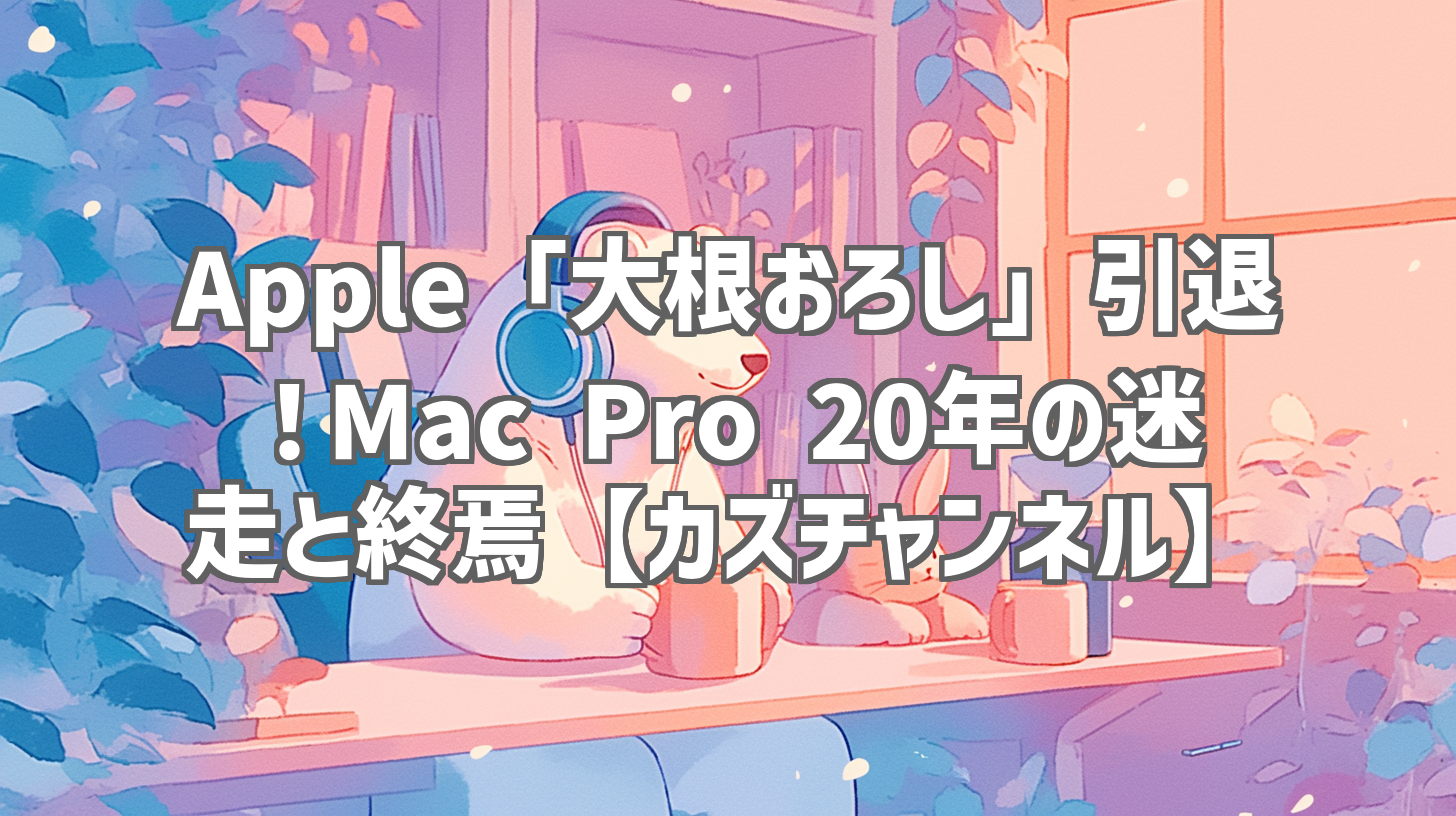 Appleの「大根おろし」Mac Proの引退は、一つの時代の終わりを告げる出来事です。カズチャンネルさんの動画は、その歴史を振り返りながら、Appleの挑戦と革新の精神を改めて感じさせてくれます。