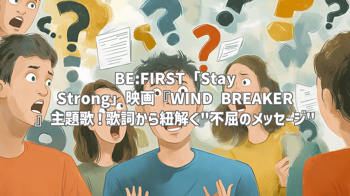 皆さん、こんにちは!YouTubeレビューブロガーの〇〇です。今回ご紹介するのは、今最も勢いのあるボーイズグループ、BE:FIRSTの最新曲「Stay Strong」のリリックビデオ!この曲、なんと映画『WIND BREAKER』の主題歌なんです。リリース前からその疾走感あふれるサウンドと、胸に響く歌詞が話題沸騰中でしたが、実際に聴いてみて、これはもう「不屈の精神」を体現するアンセムだと確信しました。彼らの音楽が持つ力強さと、映画の世界観が見事に融合した一曲。歌詞の一言一句に込められたメッセージを、一緒に深掘りしていきましょう!