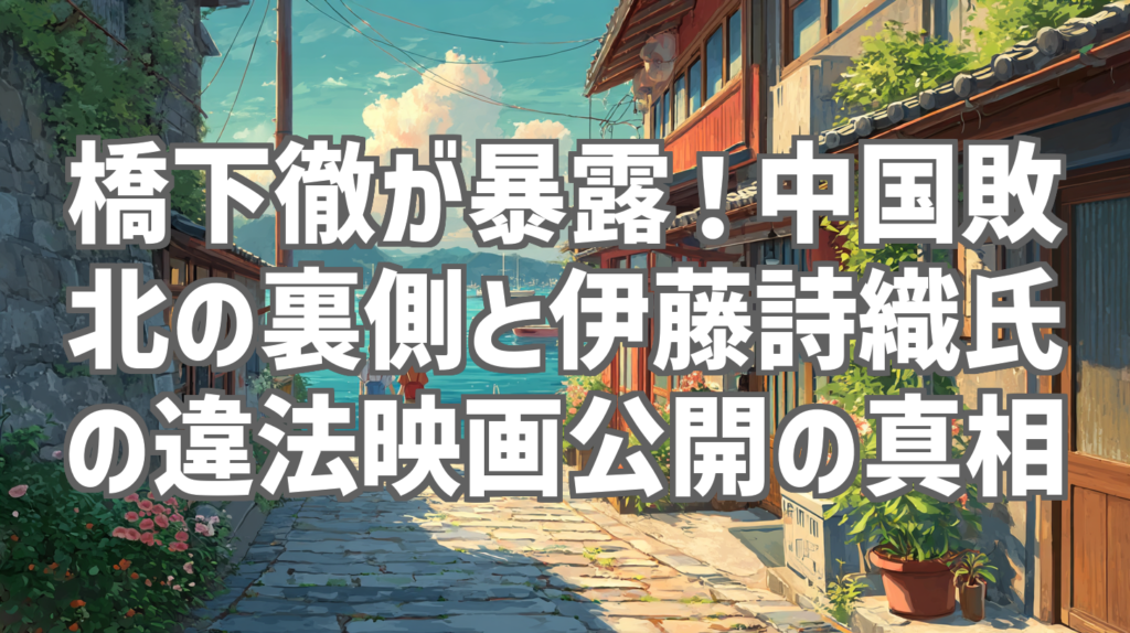 橋下徹が暴露!中国敗北の裏側と伊藤詩織氏の違法映画公開の真相 最近、YouTubeで話題になっている「さささのささやん」さんの動画「【橋下徹 うっかり発言】中国は完全に負け筋!と認める【東京新聞も見捨てる】伊藤詩織、違法映画を公開」を視聴しました... -