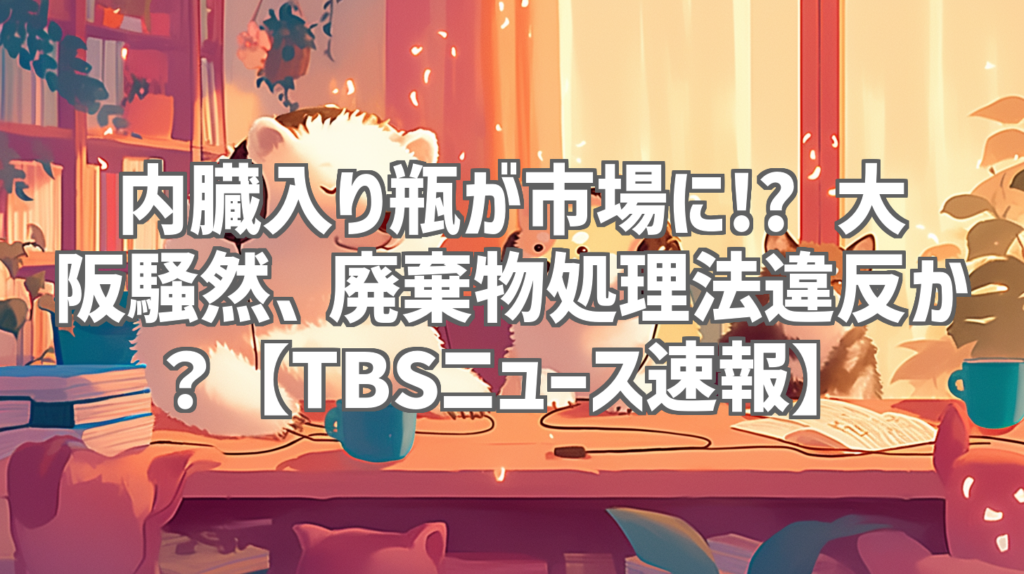 内臓入り瓶が市場に!? 大阪騒然、廃棄物処理法違反か?【TBSニュース速報】 まさかこんなものがニュースになるとは…。先日、YouTubeのおすすめに表示された「内臓のようなものが入った瓶が市場に投棄された」という衝撃的なニュース動画。最初は目を疑いま... -