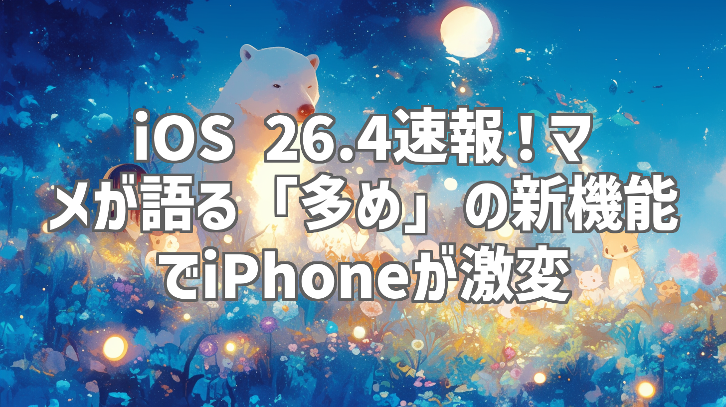 ついに来た!iOS 26.4のアップデート情報! 今回は、ガジェット系YouTuberとしてお馴染みの「マメ」さんの動画を参考に、iOS 26.4の新機能を深掘りしていきます。動画タイトルからもわかるように、今回のアップデートは「多め」! どんな新機能が追加されたのか、使い勝手はどうなのか、マメさんのレビューを基に徹底的にチェックしていきましょう! iPhoneユーザーなら絶対に見逃せない情報満載です!