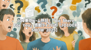 ついにJO1が東京ドームに立った!2025年、JAM(JO1のファン)にとって忘れられない年になったことは間違いないでしょう。私もその一人として、会場の熱気と感動を肌で感じてきました。今回、JO1の東京ドーム公演「JO1DER SHOW 2025 ‘WHEREVER WE ARE’」から、ユニット曲「Be There For You」のライブ映像が公開!あの日の感動が蘇ってきて、いてもたってもいられず、すぐにレビュー記事を書くことにしました。ライブに行けなかったJAMも、この動画を見れば会場の熱狂を追体験できるはず!ぜひ一緒に、あの感動を分かち合いましょう!