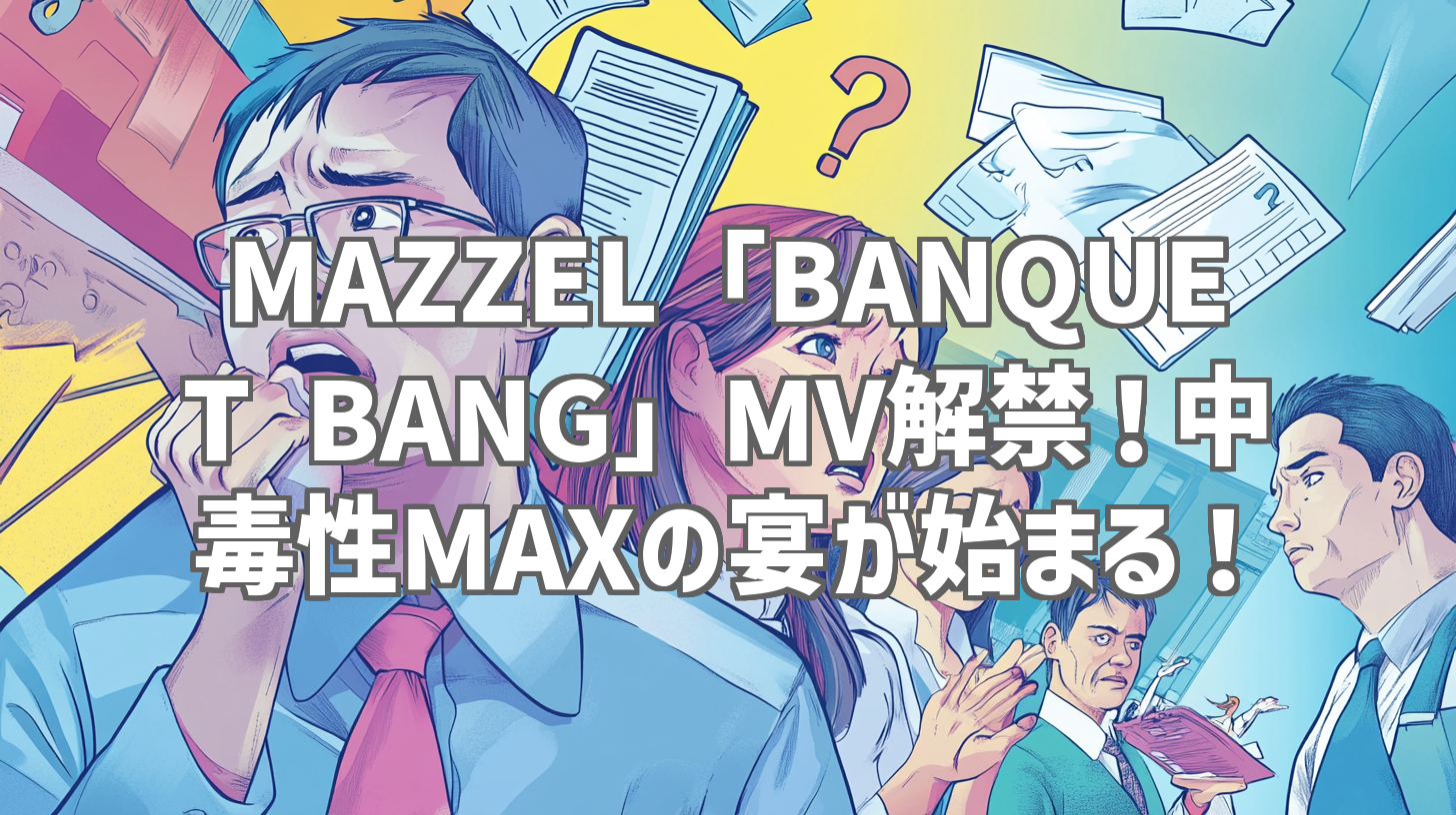 MAZZELの最新MV「BANQUET BANG」が公開されました!公開からわずかな時間で50万回再生を突破し、SNSでも話題沸騰中です。私も早速視聴しましたが、一度聴いたら頭から離れない中毒性MAXの楽曲と、目を奪われるような映像美に圧倒されました!この記事では、「BANQUET BANG」の魅力的なポイントを徹底的にレビューしていきます。まだ視聴していない方は、ぜひMVをチェックしてからこの記事を読んでみてください!