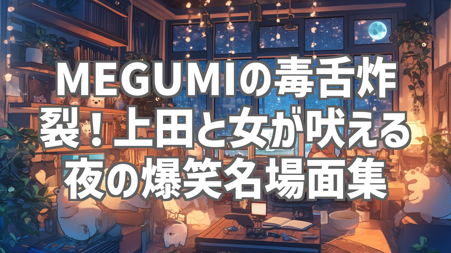 MEGUMIさんの毒舌が炸裂する、爆笑必至の動画をご紹介しました。「上田と女が吠える夜」の面白いシーンを凝縮したこの動画は、たった1分であなたの日常に笑いを届けてくれるはずです。ぜひ一度、ご覧になってみてください。きっとあなたもMEGUMIさんの魅力にハマってしまうはず!