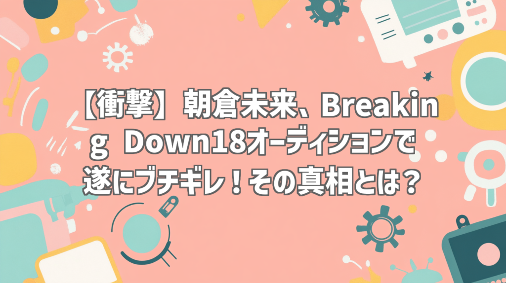 【衝撃】朝倉未来、Breaking Down18オーディションで遂にブチギレ!その真相とは? YouTubeで数々の伝説を生み出してきた格闘家・朝倉未来。彼のチャンネルで公開される「Breaking Down」のオーディション動画は、毎回私たちの度肝を抜くリアルな人間ドラ...