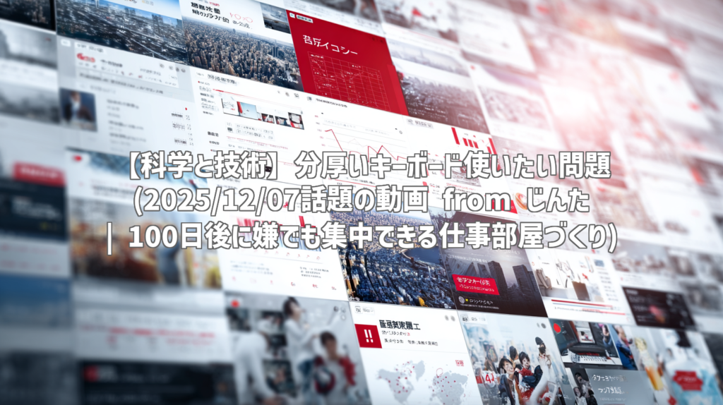 【科学と技術】分厚いキーボード使いたい問題 (2025/12/07話題の動画 from じんた | 100日後に嫌でも集中できる仕事部屋づくり) 動画: 分厚いキーボード使いたい問題 (YouTubeより) 動画情報 チャンネル: じんた | 100日後に嫌でも集中できる仕事部屋づく... -