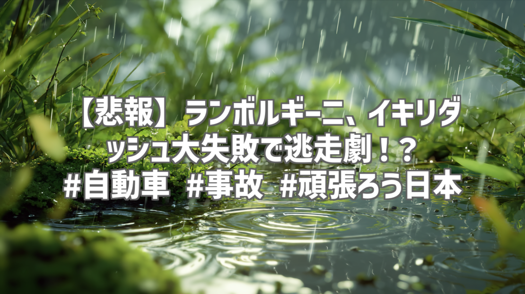 【悲報】ランボルギーニ、イキリダッシュ大失敗で逃走劇!? #自動車 #事故 #頑張ろう日本 皆さん、衝撃的な映像を目撃してしまいました。YouTubeチャンネル「頑張ろう日本」が公開した動画、「イキリダッシュに失敗してしまったランボルギーニ逃走ὢ... -
