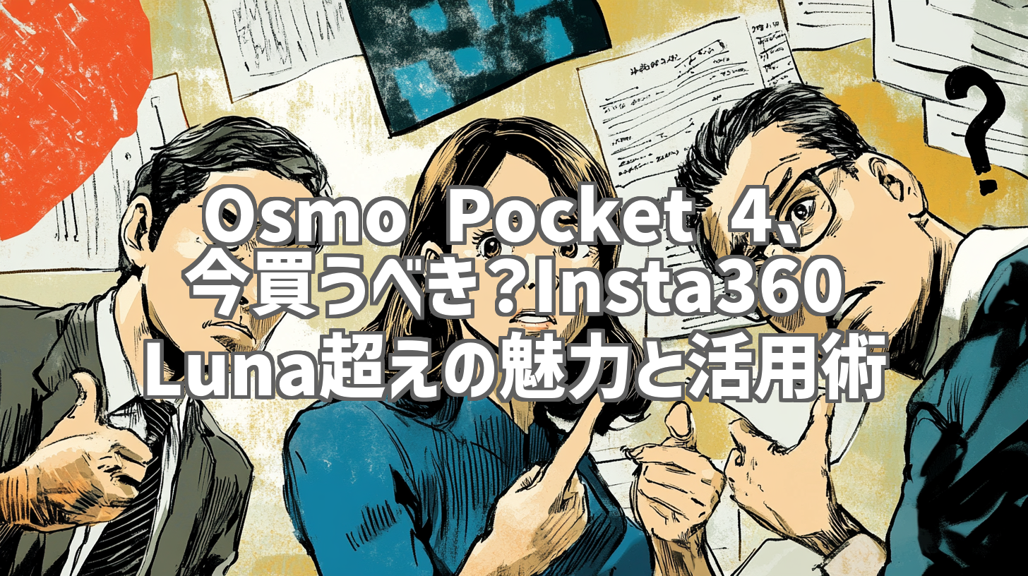 動画クリエイターなら誰もが気になる最新ガジェット、Osmo Pocket 4。発表以来、その高性能とコンパクトさで話題を呼んでいますが、続報として上位モデルOsmo Pocket 4Pや、Insta360 Lunaといった強力なライバル機の登場が噂されています。「今、Osmo Pocket 4を買うのは時期尚早なのでは…?」そんな疑問を抱いている方も多いのではないでしょうか。