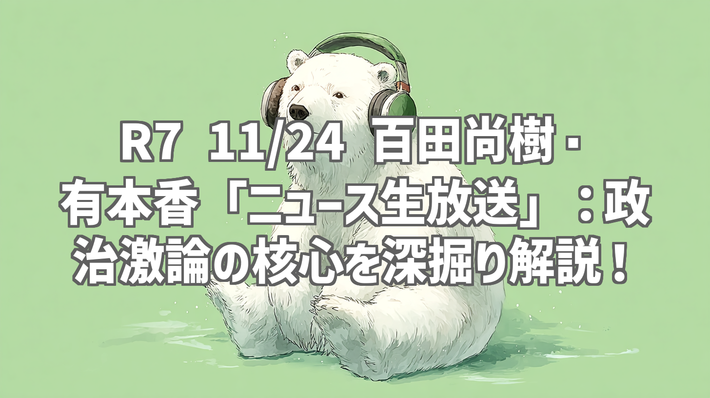 記事タイトル R7 11/24 百田尚樹・有本香「ニュース生放送」:政治激論の核心を深掘り解説!