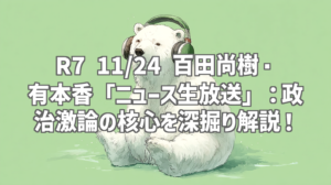 記事タイトル R7 11/24 百田尚樹・有本香「ニュース生放送」:政治激論の核心を深掘り解説!