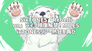先日、SixTONESのYouTubeチャンネルで突如公開された「Rebellion」のライブ映像!2026年のアリーナツアー「MILESixTONES」から、ららアリーナ東京ベイ公演での初披露映像ということで、公開直後からSNSを中心に大きな話題となっています。私も速攻で視聴しましたが、そのパフォーマンスの熱量と完成度の高さに圧倒されました。今回は、その興奮冷めやらぬ「Rebellion」のライブ映像を徹底的にレビューしていきます!見逃した方はもちろん、既に見た方も、この記事を読めばさらに「Rebellion」の魅力にハマること間違いなしです!