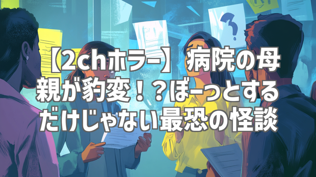 【2chホラー】病院の母親が豹変!?ぼーっとするだけじゃない最恐の怪談 最近、YouTubeのホラー界隈でちょっとした話題になっている動画を見つけたんだ。それが「2chホラー 怖ばなし」チャンネルの「ぼーっとしてる母親が病院にきた結果【怖い話】」。タイ... -