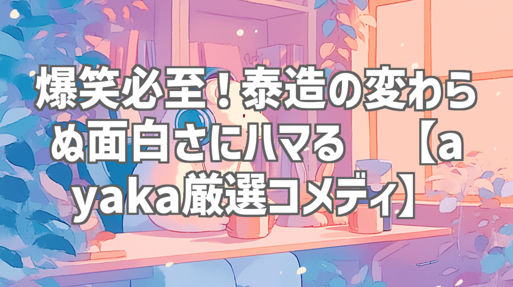 爆笑必至!泰造の変わらぬ面白さにハマる😹【ayaka厳選コメディ】 最近、YouTubeを徘徊していたら、思わず声を出して笑ってしまった動画を見つけてしまいました!それは、人気YouTuber「ayaka」さんが厳選したコメディ動画の中の1つ、「泰造変わら... -